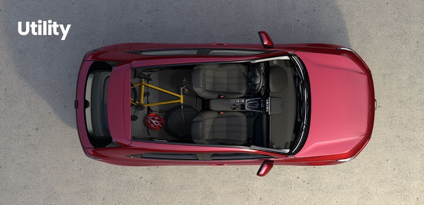 No modo Utility, os bancos traseiros são rebatidos para ampliar a área de carga, facilitando o transporte de malas, compras maiores ou equipamentos esportivos. Já o modo Long permite acomodar objetos mais compridos, como pranchas, móveis ou itens que exigem mais espaço longitudinal. No modo Tall, o assento traseiro é elevado, criando espaço vertical atrás dos bancos dianteiros, ideal para transportar objetos mais altos ou delicados com segurança.