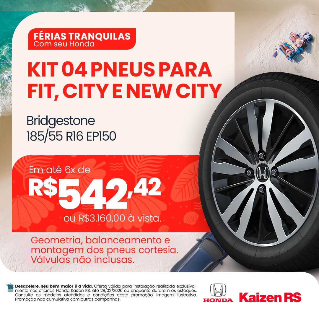 Oferta válida para instalação realizada exclusivamente nas oficinas Honda Kaizen RS, até 28/02/2026 ou enquanto durarem os estoques. Consulte os modelos atendidos e condições desta promoção. Imagem ilustrativa. Promoção não cumulativa com outras campanhas