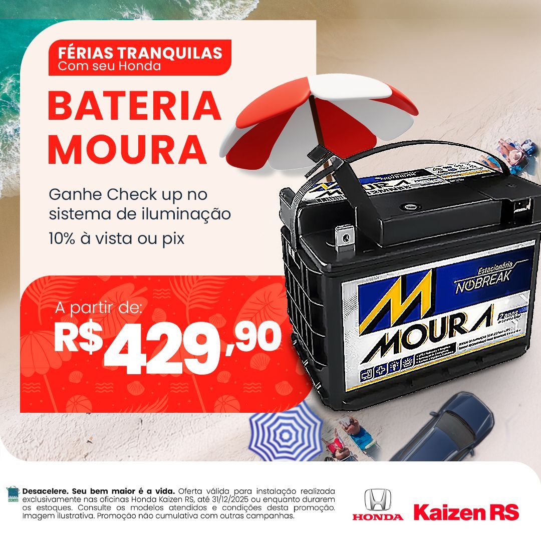 Oferta válida para instalação realizada exclusivamente nas oficinas Honda Kaizen RS, até 31/12/2025 ou enquanto durarem os estoques. Consulte os modelos atendidos e condições desta promoção. Imagem ilustrativa. Promoção não cumulativa com outras campanhas.